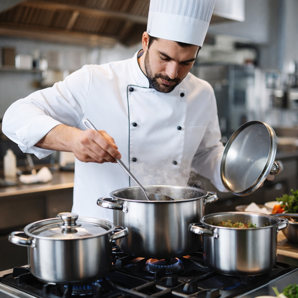 Utilisées par des professionnels, ces casseroles en acier inoxydable offrent une cuisson précise et homogène, idéale pour sublimer chaque recette.